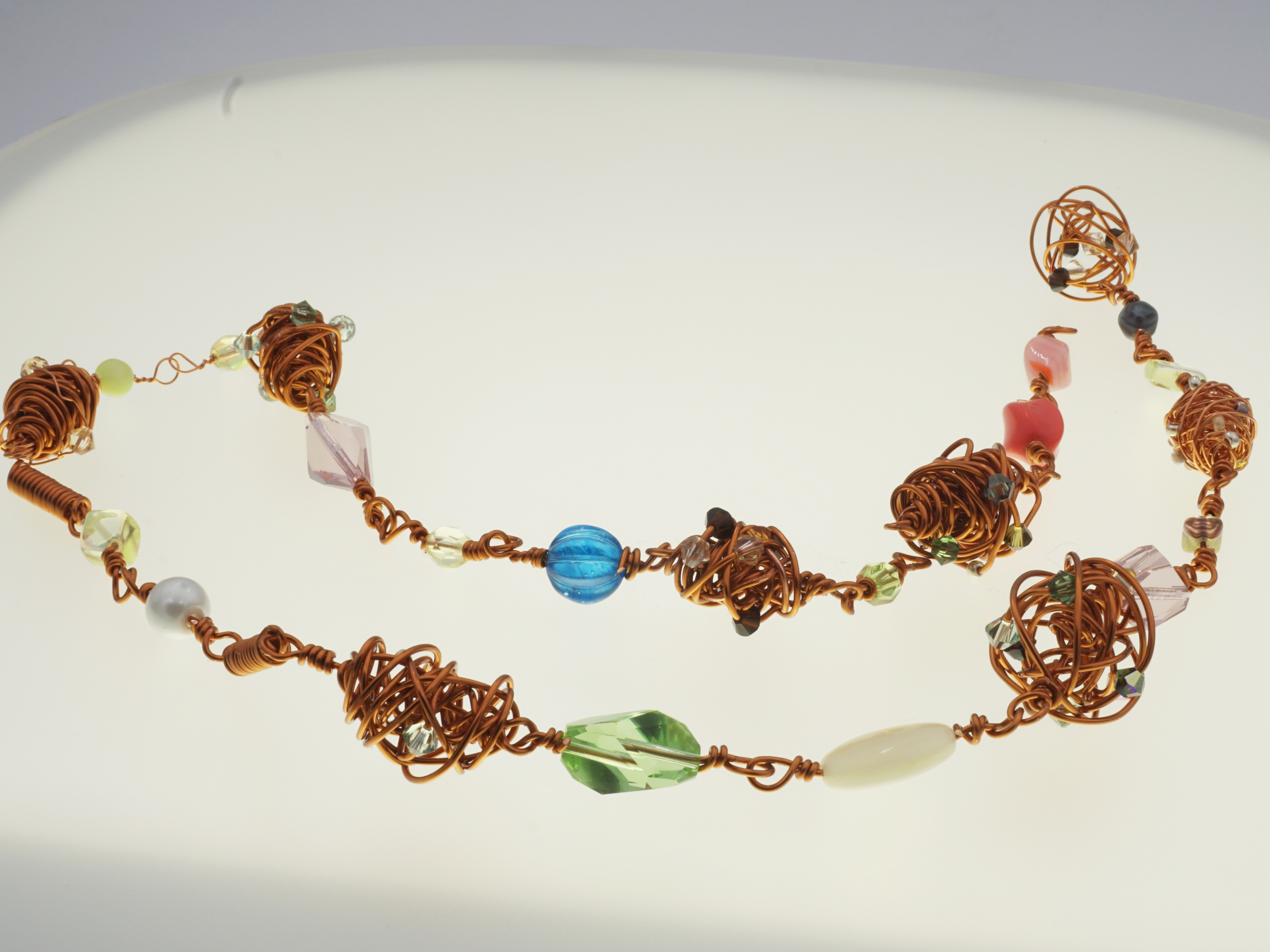 Schmuck aus Kupferlacktdraht oder versilbertem Kupferdraht mit Perlen