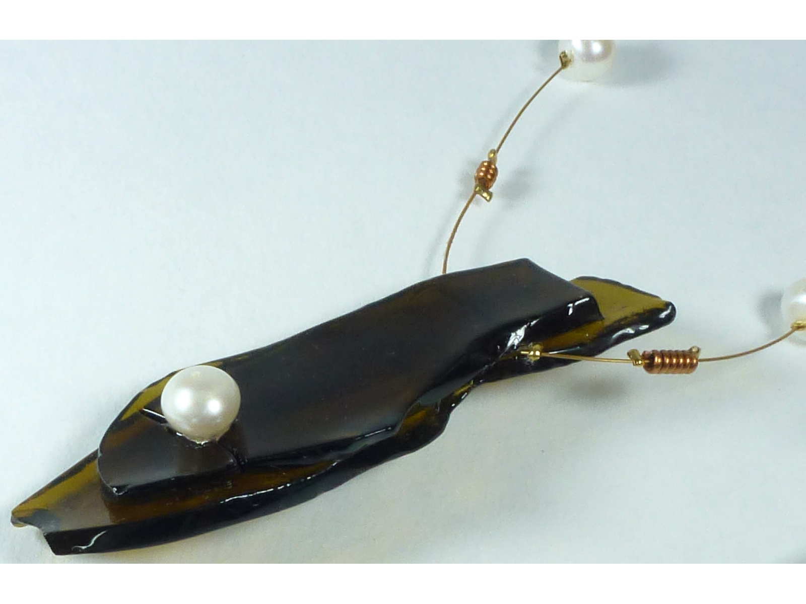 Bis zu 1.200 °C verformen Flaschenglas zu phantasievollen Schmuckstücken. Dabei verschmelzen die Scherben und Bruchkanten werden abgerundet (feuerpoliert).