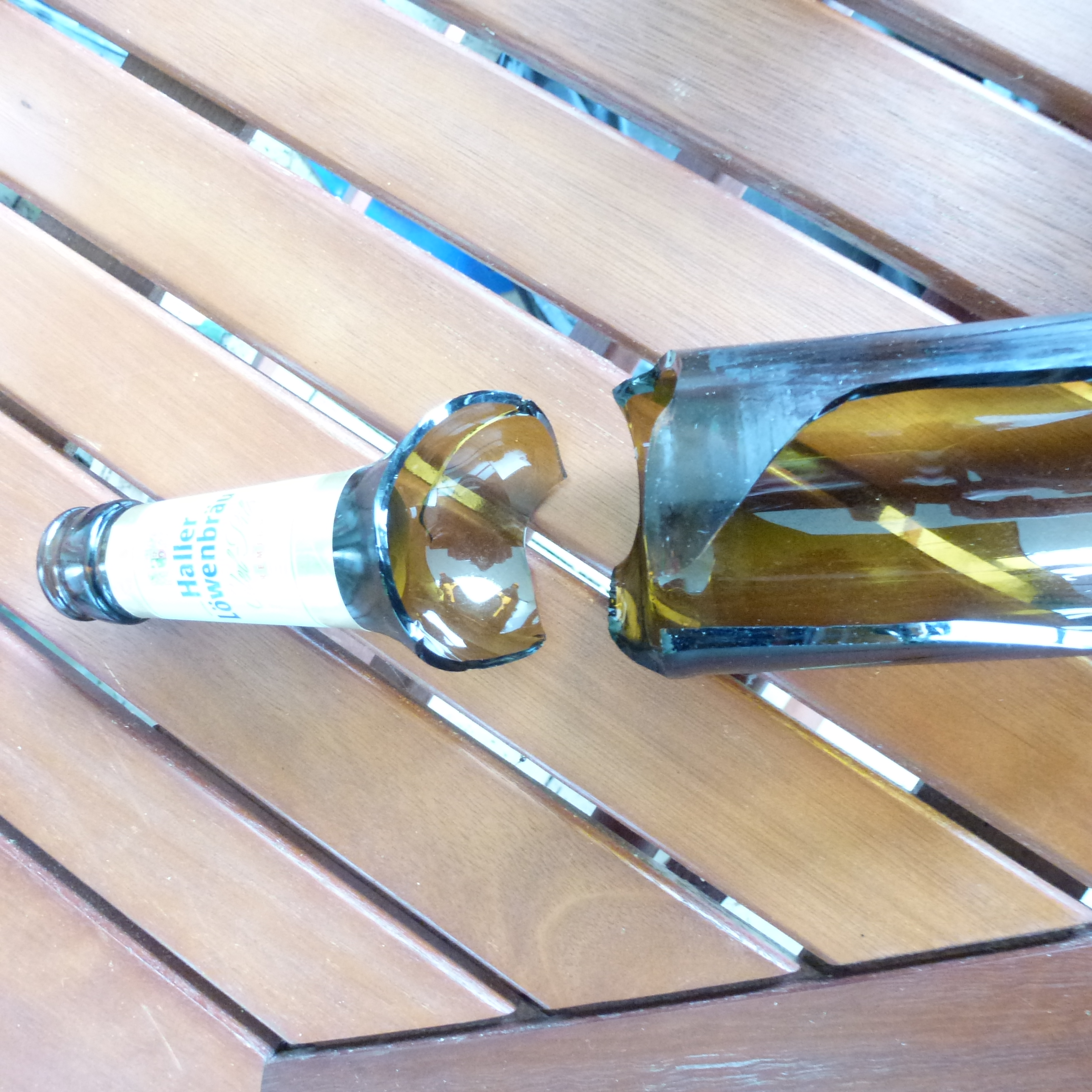 Bis zu 1.200 °C verformen Flaschenglas zu phantasievollen Schmuckstücken. Dabei verschmelzen die Scherben und Bruchkanten werden abgerundet (feuerpoliert).